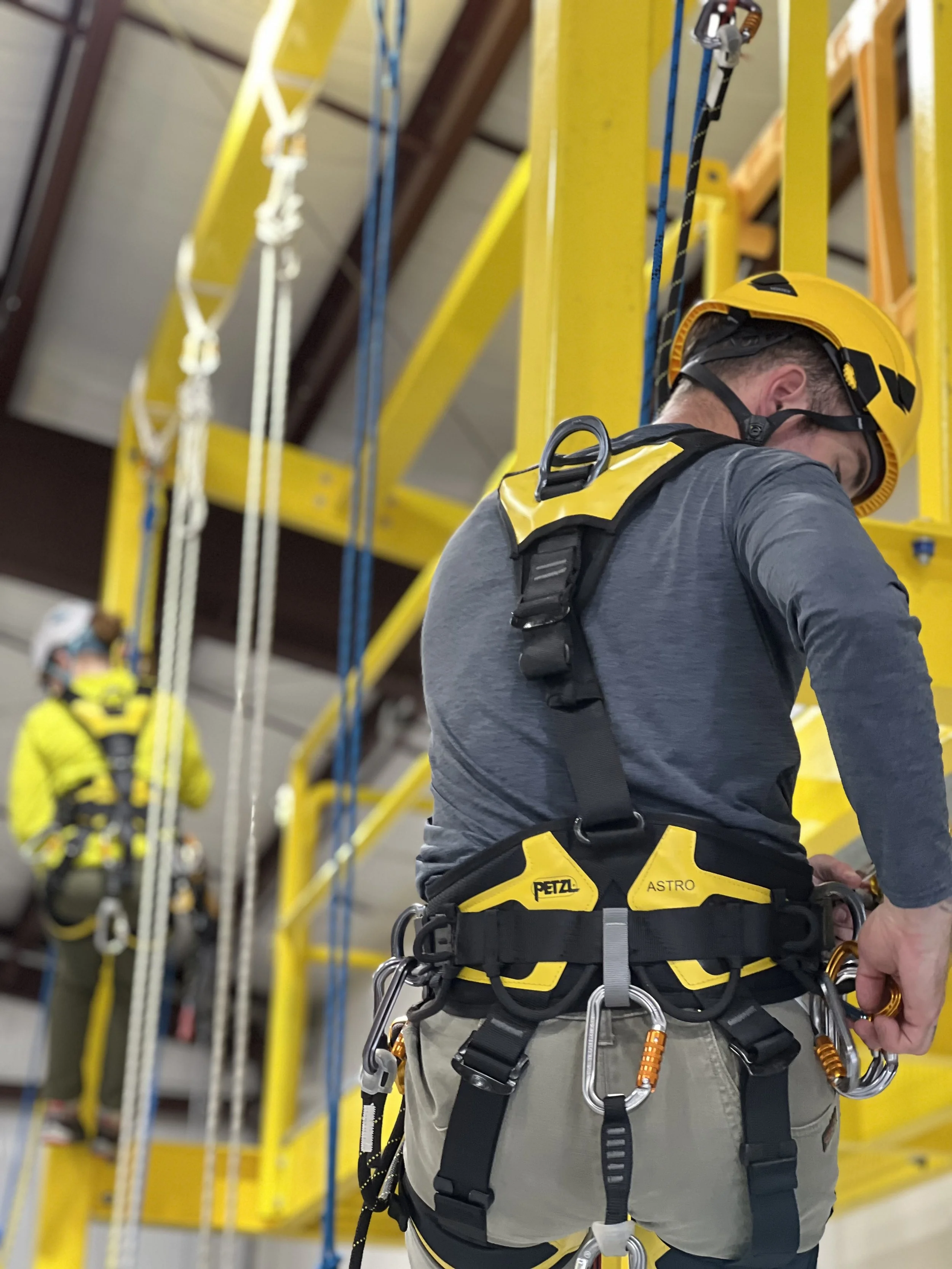 All rope access equipment including harnesses and PPE will be provided during the course. Students are encouraged to dress in athletic attire that allows for unrestricted movement and comfort. Shorts are not recommended. Closed toed shoes are required.